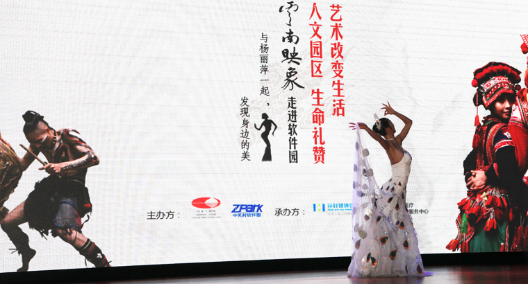 为进一步充实中关村软件园的文化内涵,推进“人文园区”的建设进程,2014年11月14日,由国家大剧院和中关村软件园主办、你好健康医疗中关村软件园健康服务中心承办的“e起飞翔 人文园区·生命礼赞----《云南映象》走进软件园”活动于2014年11月14日下午在由天伦国际酒店管理集团管理的中关村软件园国际会议服务中心一层报告厅成功举办。著名舞蹈艺术家杨丽萍带领她的团队亲临现场,与观众一起寻觅、发现身边的美。国家大剧院副院长李志祥、北京市海淀区健康管理协会会长范苏平、中关村软件园公司总经理刘克峰、你好健康医疗中关村软件园健康服务中心董事长范凤立、总经理晏江等有关领导莅临活动并致辞。来自园区内外100余家企业和媒体记者近400人参加了本次活动。